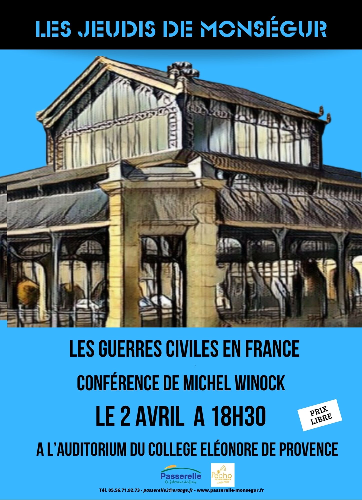 Les « Jeudis de Monségur » ont le plaisir d’accueillir Michel Winock, grand spécialiste de l’histoire de la République française et des mouvements intellectuels et politiques.